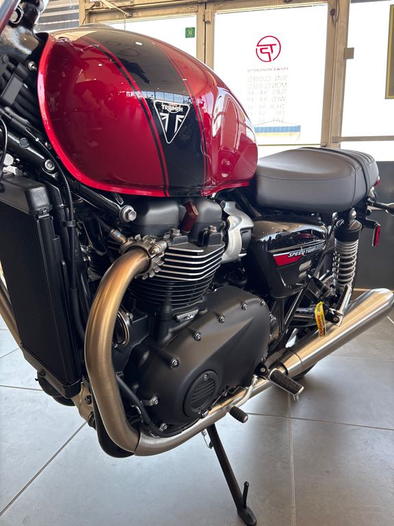 The Speed Twin 900's 900cc, liquid-cooled twin Bonneville High Torque engine provides an incredible ride. It offers an impressive peak torque of 59 LB-FT at a low 3,800 rpm and peak power of 64 HP at 7,500 rpm, which delivers power and torque smoothly, just where you need it most, low down and in the mid-range.