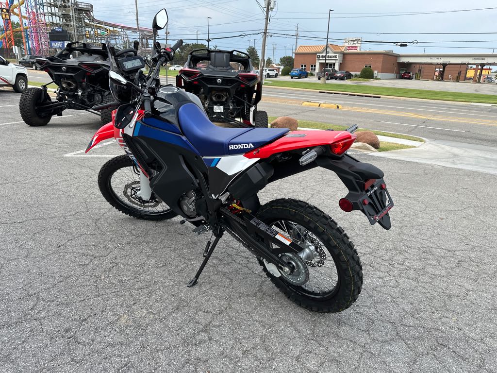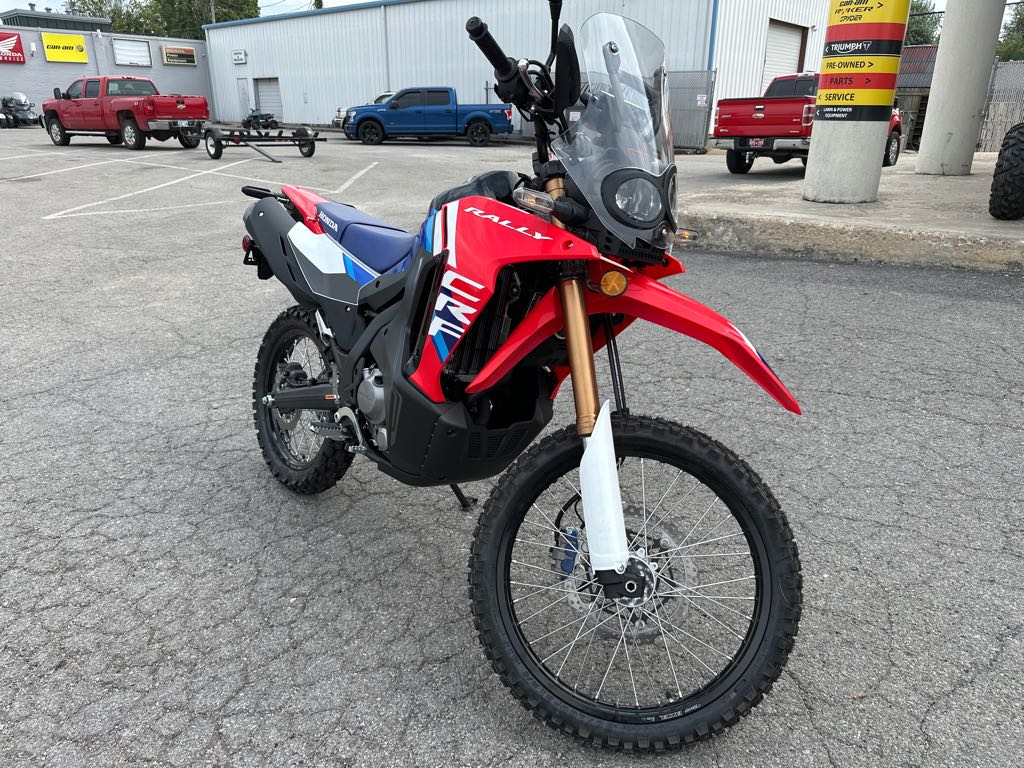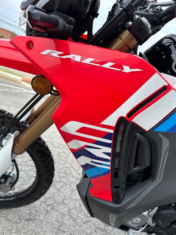 Designed to go the distance and look great doing it, the CRF300L Rally is now even better with updated suspension and enhanced heat management. Featuring a larger fuel tank, rally-style windscreen, and extended bodywork, this street-legal enduro is ready for wherever the ride takes you–on the road or off.