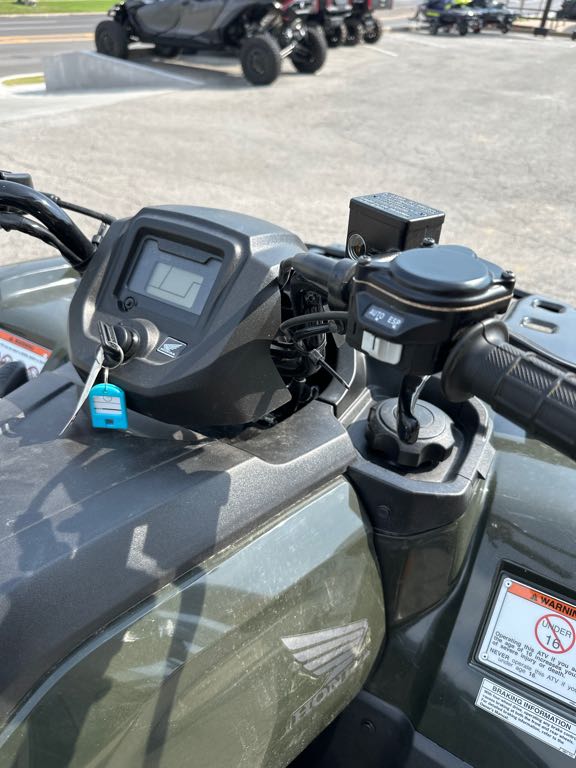 Programmed Fuel Injection (PGM-FI) allows the ATV to start in any condition and provide reliable performance. It utilizes a 34mm throttle body, 12-hole injector, and oxygen sensor for instant fuel mapping adjustment. This ensures trouble-free operation, reduces emissions and improves fuel efficiency.